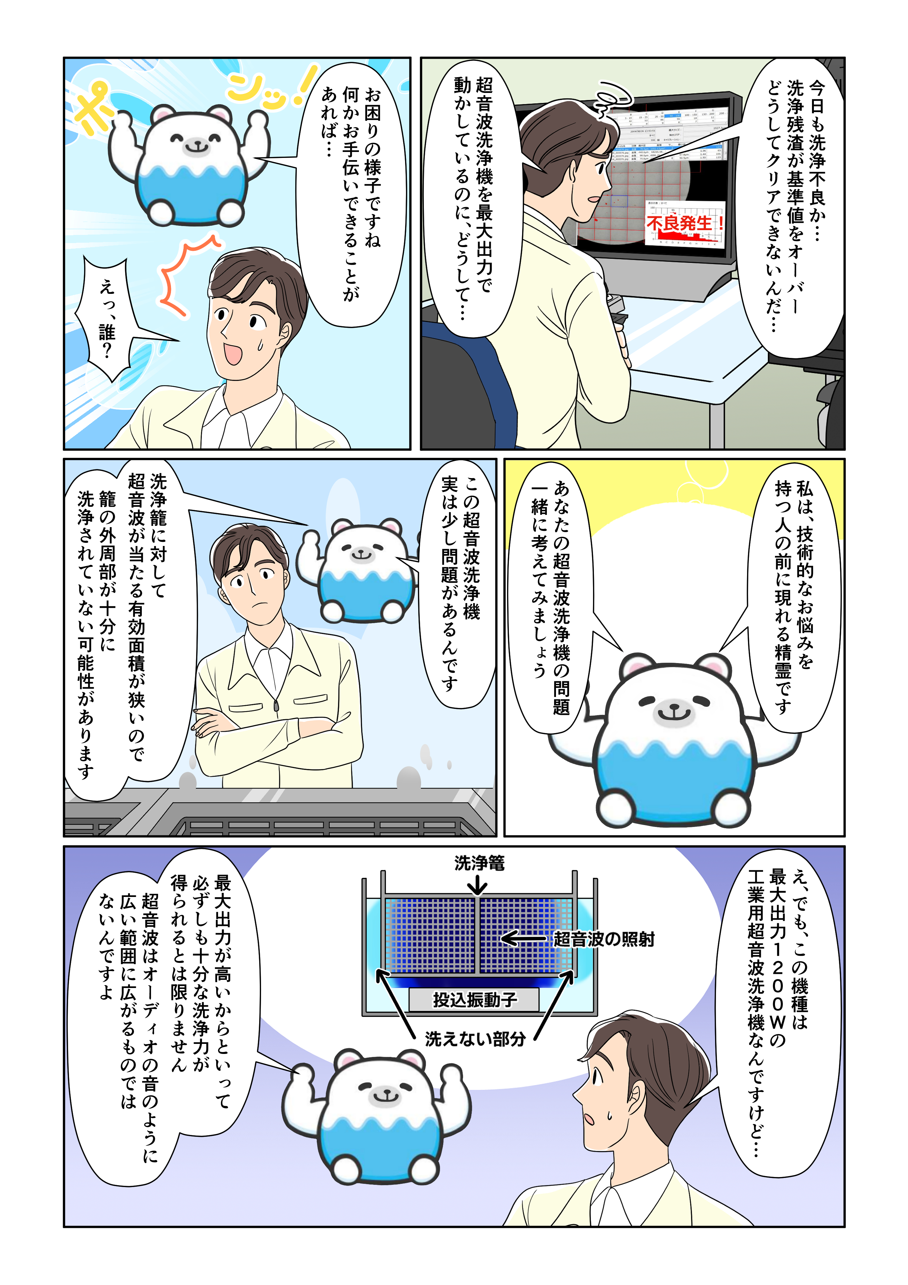 2025/10/24 漫画版 超音波物語 第1話 『洗浄残渣をやっつけろ!』 超音波洗浄機事業 洗浄システム事業 【技術動画】超音波物語 その他のお知らせ 【製品紹介】超音波洗浄機 漫画版 【超音波物語】 LINEで送る Tweet 強力なキャビテーションで高洗浄力を発揮する工業用超音波洗浄機フェニックスプラスの説明動画です。(1分21秒) LINEで送る Tweet